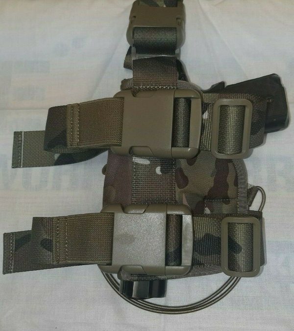 Crib Gogh Universal Pistol Drop Leg Holster With Belt + Leg Attachment Gen 2. In Multicam / MTP